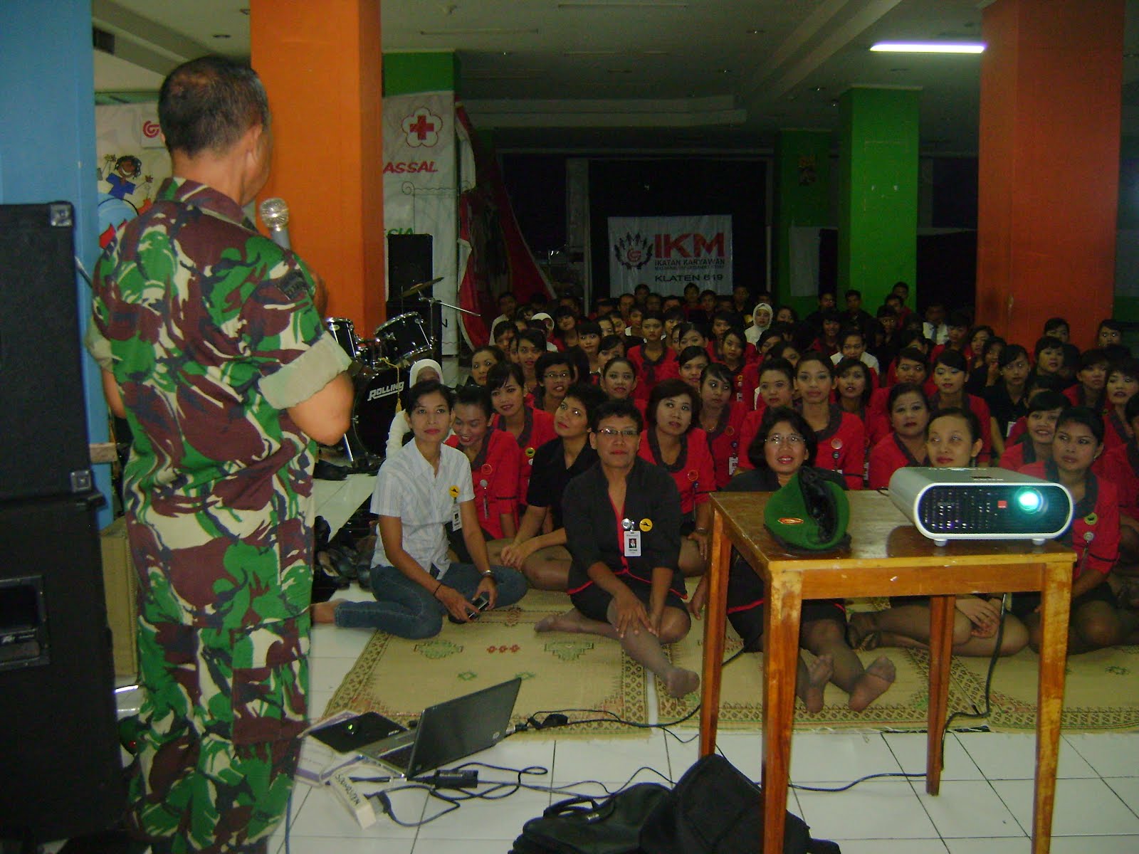 Kegiatan penyuluhan wawasan kebangsaan dan bela negara di lingkungan perusahaan kepada karyawan/karyawati Matahari Plaza Klaten, yang dilaksanakan oleh Pasiintel Kodim 0723/Klaten (Kapt.Inf Sumarno) Adapun pesan materi yang disampaikan adalah sebagai berikut : 1) Empat pilar berbangsa dan bernegara (Pancasila,UUD’45,Bhineka Tunggal Ika dan NKRI) 2) Wawasan kebangsaan membentuk karakter generasi muda sebagai generasi penerus bangsa 3) Membentengi Aspek pengaruh dari dampak perang modern