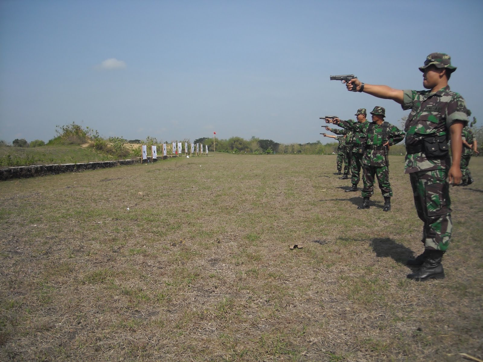 Trucuk,(23/10/2012). Sebanyak 261 orang prajurit Kodim 0723/Klaten melaksanakan latihan menembak senjata ringan Triwulan IV TA.2012 di lapangan tembak Kodim 0723/Klaten yang terletak di kec.trucuk.Dalam kegiatan tersebut Kapten Inf Warsimo Danramil 05/Jatinom di perintah sebagai Komandan Latihan dibantu oleh Kapten Inf Joko P Danramil 08/Ngawen dan Kapten Inf Suyanto Danramil 09/Prambanan sebagai Koordinator baik senapan maupun Pistol. Dalam kegiatan latihan menembak senjata ringan Triwulan IV TA.2012 ini Kodim 0723/Klaten melaksanakan dengan materi : 1) Menembak Senapan. Setiap prajurit penembak senapan mampu menembak tepat/penilaian senjata M16 A1 jarak 100 M dengan sikap sikap tiarap tak tersandar dengan nilai perkenaan 65 % . 2) Menembak Pistol.Setiap prajurit penembak pistol mampu menembak tepat penilaian senjata P-1 jarak 15 meter, sikap berdiri satu tangan dengan standar nilai perkenaan 60 %. Dalam menjaga ketertiban dalam pelaksanaannya, latihan menembak senjata ringan Triwulan IV TA.2012 disesuaikan dengan mekanisme yang ada sehingga diharapkan kegiatan latihan dapat berjalan sesuai dengan tujuan dan sasaran yang di harapkan.(Dim0723)