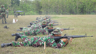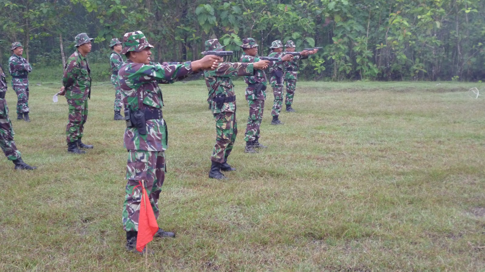 Kemampuan menembak merupakan salah satu keterampilan yang harus dimiliki oleh setiap Prajurit Kodim 0723/Klaten dalam rangka mendukung pelaksanaan tugas, kemampuan ini akan dimiliki apabila latihan yang dilaksanakan secara tersusun, terencana dan terprogram sesuai dengan ketentuan serta didukung dengan sarana prasarana yang memadai dengan baik, berkaitan dengan hal tersebut kodim 0723/Klaten menyelenggarakan latihan menembak senjata ringan Triwulan II TA.2013 pada tanggal 11 s.d 13 Juni 2013 di lapangan tembak Kodim 0723/Klaten di Kecamatan Trucuk. Dalam kegiatan latihan tersebut ditunjuk sebagai Komandan Latihan Kapten Inf Ahmad Marsono Danramil 15/Polanharjo dibantu oleh Koordinator materi menembak Pistol Kapten Inf Suyanto Danramil 09/Prambanan dan Kapten Inf Rakimin Danramil 12/Manisrenggo sebagai Koordinator menembak Senapan. Sebanyak 458 Prajurit Kodim 0723/Klaten melaksanakan latihan menembak senjata ringan Triwulan II TA.2013 dengan 399 prajurit penembak senapan dan 49 orang prajurit penembak pistol. Diharapkan Seluruh Prajurit Kodim 0723/Klaten mampu memelihara dan meningkatkan kemampuan menembak senjata ringan baik Pistol maupun senapan M 16-A1 untuk tingkat perorangan di satuan sesuai dengan DSPP.(Dim0723)