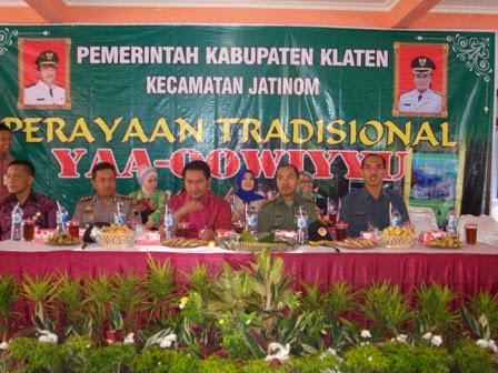 Pada Hari Jumat tanggal 12 Desember Dandim beserta Muspida Kab. Klaten menghadiri gelar budaya Yaa Qowiyyu di Kec. Jatinom Kab. Klaten. Tradisi sebaran apem Yaa Qowiyyu Jatinom Klaten merupakan tradisi menyebarkan kue apem yang nantinya akan diperebutkan. Tradisi ini diadakan tiap hari jum’at bulan Sapar dalam penanggalan jawa. Menurut cerita tradisi ini berawal ketika Kyai Ageng Gribig tokoh ulama penyebar Agama Islam di daerah Jatinom pulang naik haji membawa roti apem dari Mekah yang masih hangat,  sampainya dirumah roti apem tersebut akan dibagi-bagikan kepada murid-muridnya, akan tetapi tidak mencukupi, kemudian Kyai Ageng Gribig menyuruh salah satu muridnya untuk membuat roti apem yang lebih banyak agar mencukupi untuk dibagi-bagikan kepada murid-muridnya dan warga sekitar. Tradisi ini masih bertahan sampai sekarang.