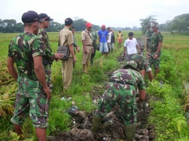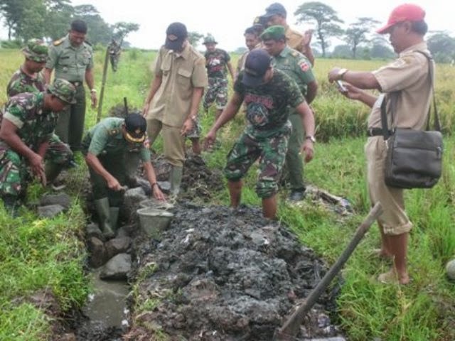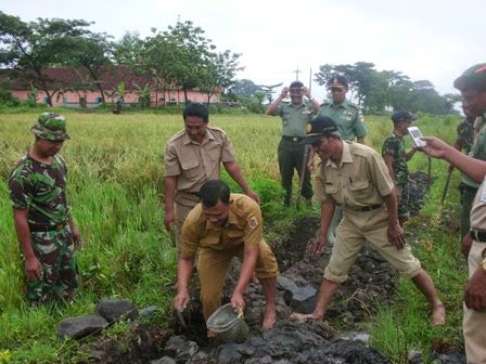Kodim 0723/Klaten bersama Kades Jurangjero, PPL, Kelompok Tani dan Anggota Koramil 14/Karanganom melaksanakan pembangunan dan perbaikan saluran irigasi tersier di Dk. Bungkusan Ds. Jurangjero Kec. Karanganom Kab. Klaten yang di awali dengan peletekan batu pertama oleh Kasdim 0723/Klaten dalam rangka mengoptimalkan hasil produksi padi dalam rangka Ketahanan Pangan diwilayah Kab. Klaten dengan Panjang 300 M Lebar 40 Cm dan Tinggi 95 Cm serta mampu mengairi sawah seluas 20 Ha.