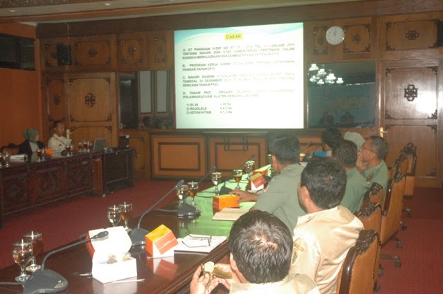 Pada tanggal 12 januari 2015 telah dilaksanakan Rakor peningkatan Swasembada Pangan, Di Ruang Bina Yudha, dipimp oleh Kasdam IV/Diponegoro ( Brigjen TNI Ibnu Darmawan ) dalam kesempatan tersebut Kasdim 0723/Klaten (Mayor Inf Yahmin ) melaksanakan Paparan Rencana kegiatan “Tanam padi Organik Rojolele, Ketan Hitam dan IR 64, dengan Tema ” PEMDA, PETANI BERSAMA TNI MENDUKUNG PROGRAM SWASEMBADA PANGAN NASIONAL”