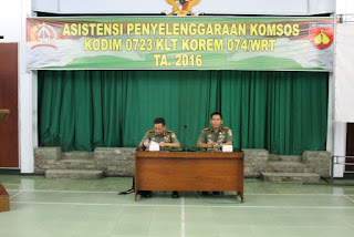 Pada hari Rabu tanggal 20 April 2016 pukul 08.00 s.d 11.00 Kodim 0723/Klaten menerima kunjungan Tim Asnis penyelenggaraan Komsos kegiatan tersebut dihadiri Oleh ; BP4K Pertanian, Tokoh agama, Tokoh masyarakat, Tokoh adat, LSM, Pepabri, LVRI, Camat Ngawen, Lurah Tonggalan, Klaten,Semangkak dan Bareng; Tim Sdirbinter dari Pusterad dipimpin oleh Letkol Inf I Made Irawan, S.Psi.