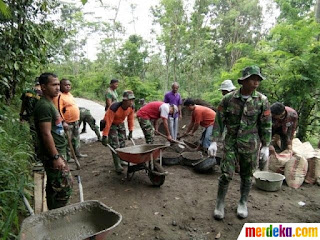 Kebersamaan TNI dan warga gotong-royong bangun jalur evakuasi Merapi