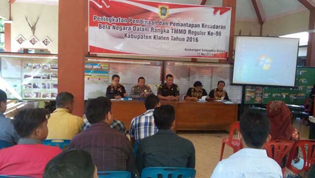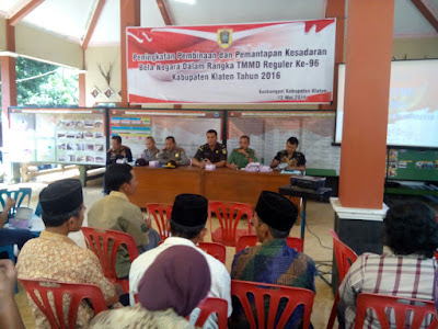 Pada hari Kamis tanggal 12 Mei 2016 telah dilaksanakan pembekalan tentang Bela Negara yang di sampaikan oleh Bpk Ginanjar Damar Pamenang, SH. MH. Beliau menyampaikan bahwa bela negara adalah merupakan tekad sikap dan prilaku warga negara yang di jiwai oleh kecintaan kita kepada negara kesatuan republik yang berdasarkan Pancasila dan UUD 1945, rela berkorban demi kelangsungan hidup bangsa dan negara, dan hal ini sudah di implimentasikan oleh warga panggang dengan ikut bersama TNI dalam pelaksanaan program TMMD reguler 96 Kodim 0723/ Klaten ini.