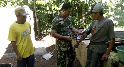 Petugas kesehatan itu  tidak hanya memonitor kesehatan prajurit, melainkan  juga kesehtan masyarakat yang sedang ikut bekerja. Seperti yang dilakukan di lokasi sasaran betonisasi Dukuh  Bunder,  Desa Panggang.