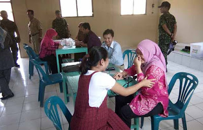 KLATEN – Dengan melibatkan Stikes Muhammadiyah Klaten, TNI Kodim 0723/Klaten memberi penyuluhan tetang kesehatan dan pengobatan gratis di SDN Panggang, Rabu (25/05/2016). Tim Stikes Muhammadiyah Klaten memeberi pencerahan tentang penyakit yang sering diderita masyarakat Desa panggang. Dikemukakan, penyakit dimaksud adalah penyakit saluran pernafasan dan demam, dikarenakan wilayah Desa Panggang sering untuk lalulintas truk pasir yang lewat. Dengan adanya aktifitas itu menyebabkan debu-debu bertebaran. Selain itu, materi penyuluhan lainnya adalah tentang mandi, cuci dan kakus. Pada dasarnya masyarakat Panggang mengandalkan air hujan dan membeli air tangki, sehingga MCK sangat kurang karena kurangnya sumur artesis. Untuk itu seluruh warga Desa Panggang diminta untuk menjaga keebersihan di setiap harinya. Usai dilakukan penyuluhan oleh Ny. Gori L. Sera, acara dilanjutkan dengan pengobatan oleh dr. Indrawan. Dimana dalam pengobatan tersebut berhasil melayani 57 orang, masig-masing periksa ibu hamil sebanyak 10, pengobatan ispa 20 orang , demam 20 dan penyakit lain-lain 7 orang. (pendim 0723/Klaten)