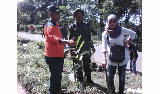 KLATEN – Ini upaya mendukung proram TMMD Kodim Klaten. Sabtu (28/05/2016), dilakukan penamaman ribuah pohon di sekitar desa sasaran TMMD Kodim Klaten, tepatnya di Desa Sidorejo, Kecamatan Kemalang, Kabupaten Klaten. Gerakan penghijuan dengan tema “Hijau Alamku Lestari Hidupku” itu, dengan penanggung jawab Andita Nugroho (Ketua Komunitas Mahasiswa UNDIP Semarang), dihadiri sekitar 100 orang dari berbagai pihak. Sejumlah pejabat dari Klaten maupun Provinsi Jawa Tengah terlibat dalam acara penghijauan itu, diantaranya , H. Jaka Sawaldi (Sekda Kabupaten Klaten), H. Raharjo (Dinas Pertanian Provinsi Jawa Tengah), Sarwo Pramana (Kepala BPBD Jawa Tengah), Siti Farida (Ketua KPU Kabupaten Klaten), Aswinto (BPBD Kabupaten Klaten), Nurhandoyo (Dinas Taman Nasional Gunung Merapi Kabupaten Klaten). Serta Muspika Kecamatan Kemalang, Kades Sidorejo, Jemakir dan Sukiman (Ketua Relawan Celuk Nyaut Kecamatan Kemalang). Untuk jenis tanaman yang ditanam di gerakan penghijauan tersebut, diantaranya, pohon Trembesi sebanyak 2.500 pohon, pohon Sengon sebanyak 900 batang, dan tanaman Ketepang 25 pohon. (pendim 0723/Klaten)