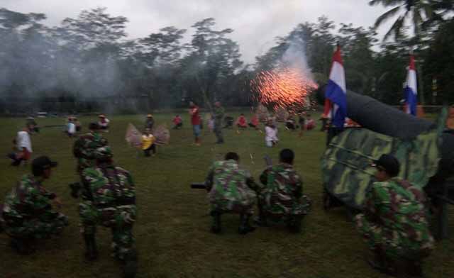 KLATEN – H-1 p digelarnya upacara penutupan TMMD Kodim 0723/Klaten, terus dimantapkan latihan Drama Kolosal. Sejumlah pihak yang ada dalam pementasan seni tersebut terlibat latihan di lapangan Desa Panggang, Kecamata Kemalang. Menurut Kasdim 0723/Klaten, Mayor Inf Yahmin , drama kolosal itu merupakan persembahan dari Kodim 0723/Klaten yang akan ditampilkan di upacara Penutupan TMMD Reguler ke-96 Kodim 0723/Klaten. ‘’Hari ini (Selasa 31 Mei 2016), dilakukan geladi kotor dan geladi bersih seni drama kolosal tersebut. selanjutnya nanti pada tanggal 1 Juni 2016 akan dipentaskan disela-sela upacara penutupan TMMD Kodim Klaten,’’ jelas Kasdim , Mayor Inf Yahmin. (Pendim 0723/Klaten)