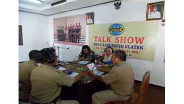 KLATEN – Dalam rangka mensyukuri dan evalusai porgram TMMD Reguler ke-96 Kodim 0723/Klaten, Pemkab Kalten menggelar talk swoh di radio siara pemerintah pemerintah setempat. Sejumlah nara sumber dihadirkan di acara yang dihelat sehari menjelang penutupan TMMD Kodim Klaten. Diantaranya, orang nomor satu di Pemkab Klaten, Bupati Klaten, Hj. Sri Hartini SE. Nara sumber lain yang yang tampil, masing-masing, Komandan Kodim 0723/Klaten, Letkol Inf Bayu Jagat S.I.P, Sekretaris Kecamatan Kemalang, Harjoko ST.MT, Kepala Desa Panggang, Kecamatan Kemalang, Nandang Nuryanto. (pendim 0723/Klaten)