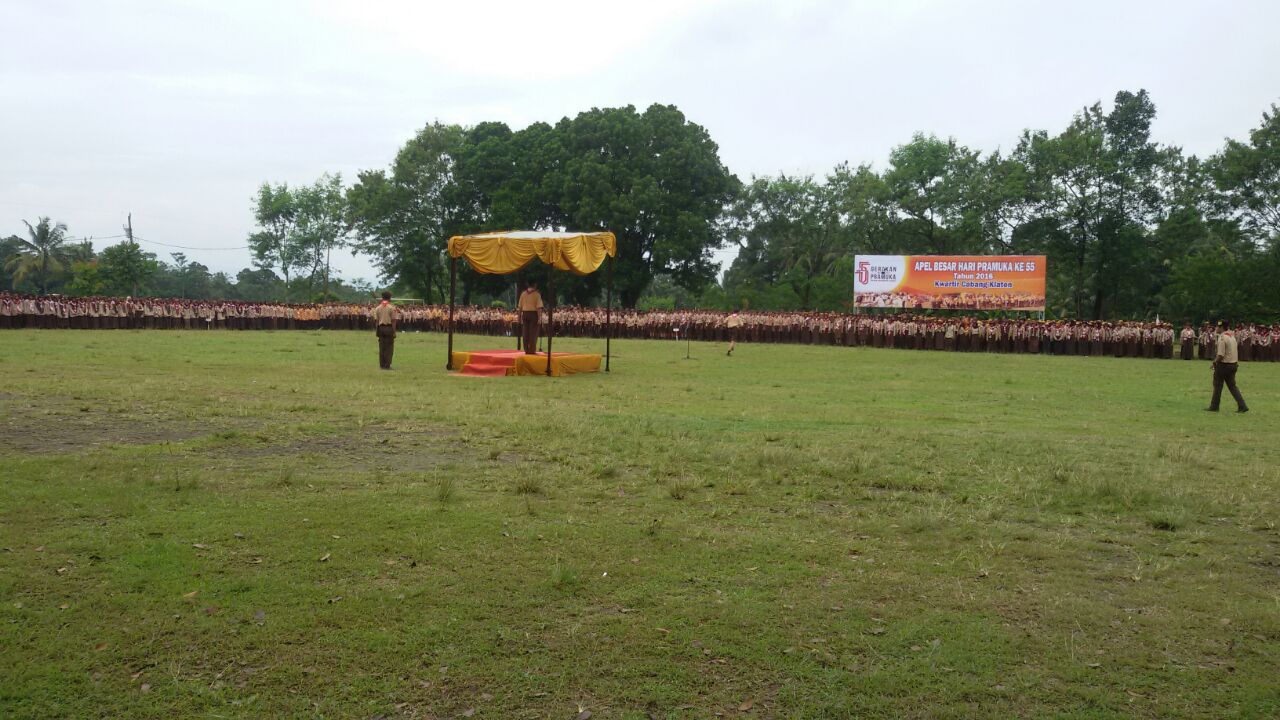 Pada hari ini Minggu tanggal 14 Agustus 2016 pukul 09.00 sd 10. 00 WIB bertempat di lapangan Bumi Perkemahan Ds Kepurun Kec Manisrenggo Kab Klaten telah berlangsung Apel besar Upacara Hari Ulang Tahun Pramuka ke 55 Tahun Tahun 2016 kwartir cabang Klaten yang di hadiri ± 1500 orang.hadir dalam Upacara tersebut Ketua Kwarcab Kab Klaten (Drs.H.Jaka Sawaldi,MM), Muspika Manisrenggo, Danramil kawedanan jogonalan, serta Siswa-Siswi SLTP dan SMK Kec.Manisrenggo.