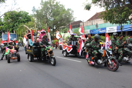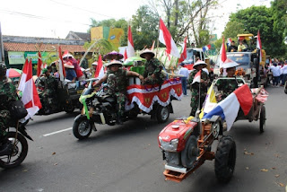 Kodim 0723/Klaten ikut ambil bagian dalam karnaval pembangunan untuk memeriahkan HUT RI ke 71 yang dilaksanakan pada hari Sabtu tanggal 21 Agustus 2016.dengan menampilkan berbagai jenis kendaraan tempur, motor dinas Babinsa, serta berbagai jenis Alsintan Anggota Kodim 0723/Klaten penuh semangat mengikuti karnaval dari awal sampai selesai.dengan berbagai jenis Alsintan yang dimiliki Kodim 0723/Klaten siap mendukung Pemerintah dalam mensukseskan Program ketahanan pangan.