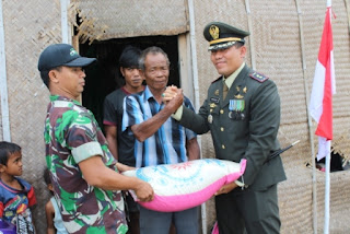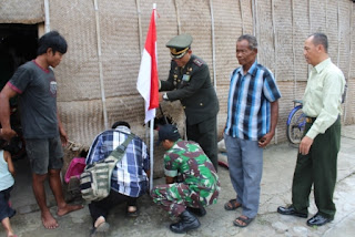 “Saat ini kita sedang merayakan hari kemerdekaan bangsa Indonesia yang ke 71, oleh karena itu marilah kita semua berbagi, di rumah bapak tidak ada bendera maka kami berikan bendera agar bapak dan keluarga merasa bahwa hari ini bangsa kita sudah sejak 71 tahun yang lalu. Apabila ada yang sakit di keluarga silahkan berobat di poliklinik Kodim dan beritau saya, nanti saya akan bantu urusannya. Semoga bantuan kami pada hari ini dapat berkenan di hati bapak” arahan Dandim pada Tri Tunggal (52 tahun) bapak beranak 5 warga Dukuh Ngriman, Desa karanglo, Kecamatan Klaten Selatan yang bekerja sebagai buruh serabutan tersebut.