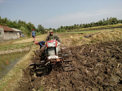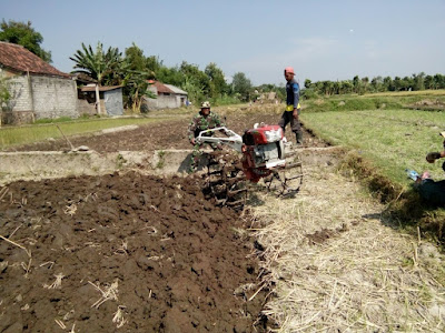 Pada hari Minggu tanggal 28 Agustus 2016 Ramil 02/Jogonalan (Serda Tekad dan Serda Sudaryana membajakan Sawah di Dukuh Cabean, Desa Bakung milik Bapak Totok kelompok Tani Ngudi Makmur Menggunakan alat Handtraktor Luas Lahan sawah 2500 M2 yang akan ditanami Jagung Jenis P-3. Pendim 0723/Klaten