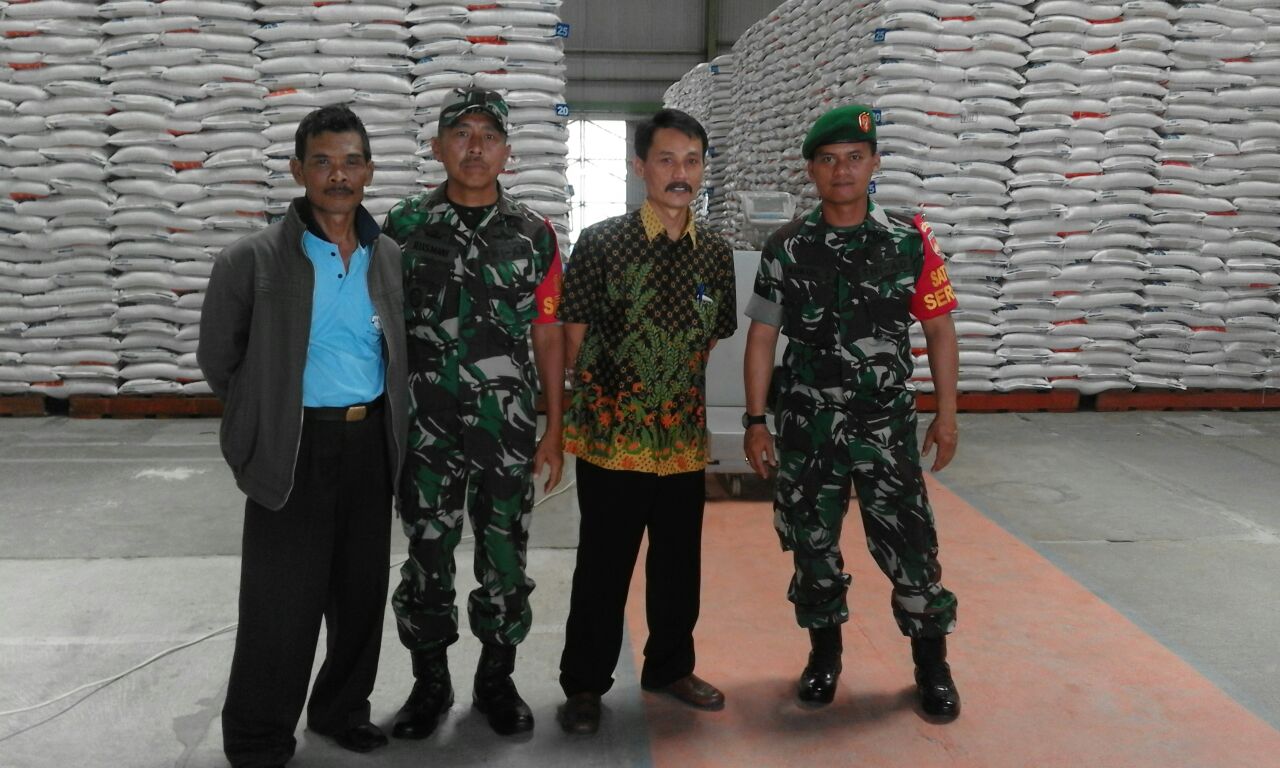 Untuk mendukung program pemerintah tentang ketahanan pangan nasional dan menjamin tercukupinya persediaan beras di Bulog, Personel Kodim 0723/Klaten (kapten Czi Rusmani dibantu Serma Kukuh) malaksanakan pemantauan Sergap di Gudang Bulog meger, Karangwuni (Kamis, 22/9).untuk kegiatan Sergap kali ini dapat diserap beras sebanyak 135.000 Kg dan untuk penyaluran Raskin sebanyak 308.190 Kg.