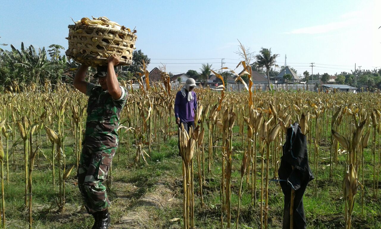 Babinsa Koramil 02/Jogonalan (Serda Widodo Purnomo) Senin tanggal 5 September 2016 melaksanakan kegiatan pendampingan Panen jagung milik Bapak.Margono dan Bapak sudiyono Kelompok Tani Abadi. untuk milik bapak .Margono dengan luas lahan 3500 M2 menghasilkan jagung sekitar 2 ton sedangkan untuk lahan milik bapak.Sudiyono dengan luas lahan 2500 M2 menghasilkan jagung sekitar 1,5 Ton.adapun bibit jagungnya di dapat dari Dinas pertanian Klaten.