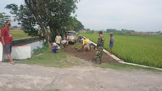 Wilayah Ramil 21/Juwiring Kodim 0723/Klaten melaksanakan kegiatan normalisasi irigasi sawah dengan menggunakan alat Exsavator Kodim 0723/Klaten di Desa Bloropleret, Kecamatan Juwiring untuk pengairan kelompok Tani Mardi Lestari dengan pendamping Serda Julianus. Adapun target yang akan dilaksanakan dengan panjang 1.000 meter lebar 5 meter. Pendim 0723/Klaten.