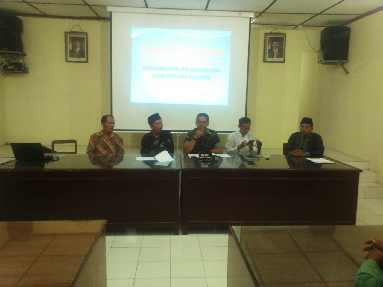 Dalam sambutannya bapak Widodo selaku Kasi trantib kecamatan Prambanan menyampaikan bahwa sesuai dengan Permendagri Nomor 10 Tahun 2009, maka tugas satuan perlindungan masyarakat (Satlinmas) adalah mendukung penanganan ketenteraman, ketertiban, dan keamanan penyelenggaraan Pemilihan Umum atau lebih dikenal dengan PAM PEMILU meskipun dalam kenyataan di lapangan terkadang seorang anggota linmas telah bekerja keras untuk melaksanakan tugas pengamanan Tempat Pemungutan Suara (TPS), menjaga kotak suara, mengirimkan ke tingkat Desa/Kelurahan dan Kecamatan sementara perhatian kesejahteraannya sangat minim sehingga sangat tidak menarik bagi generasi penerus untuk berbakti sebagai anggota Satlinmas ini. Oleh karena itu para anggota Linmas diharapkan tidak hanya memandang dari segi materi saja, tetapi juga ibadah karena bisa berguna dan membantu warga yang membutuhkan.