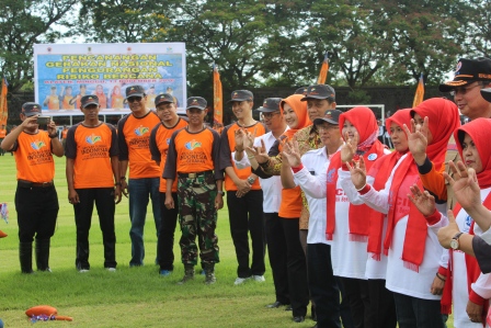 KLATEN – (13/11/2016) Kasdim 0723/Klaten menghadiri kegiatan Pencangan Gerakan Nasional Pengurangan Risiko Bencana di Stadion Trikkoyo Klaten oleh Kepala Badan Nasional Penanggulangan Bencana (BNPB) Willem Rampangilei.