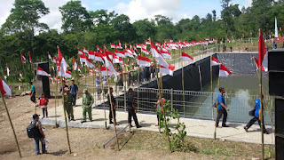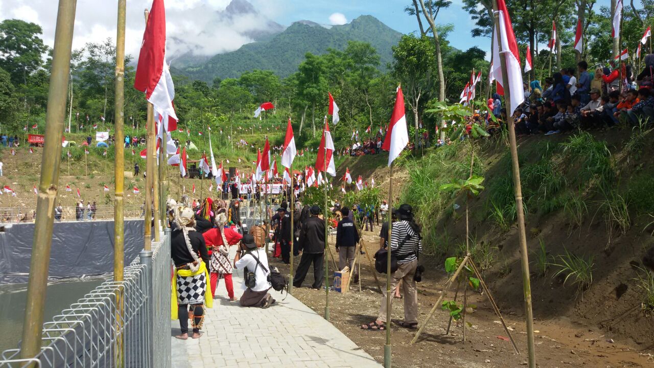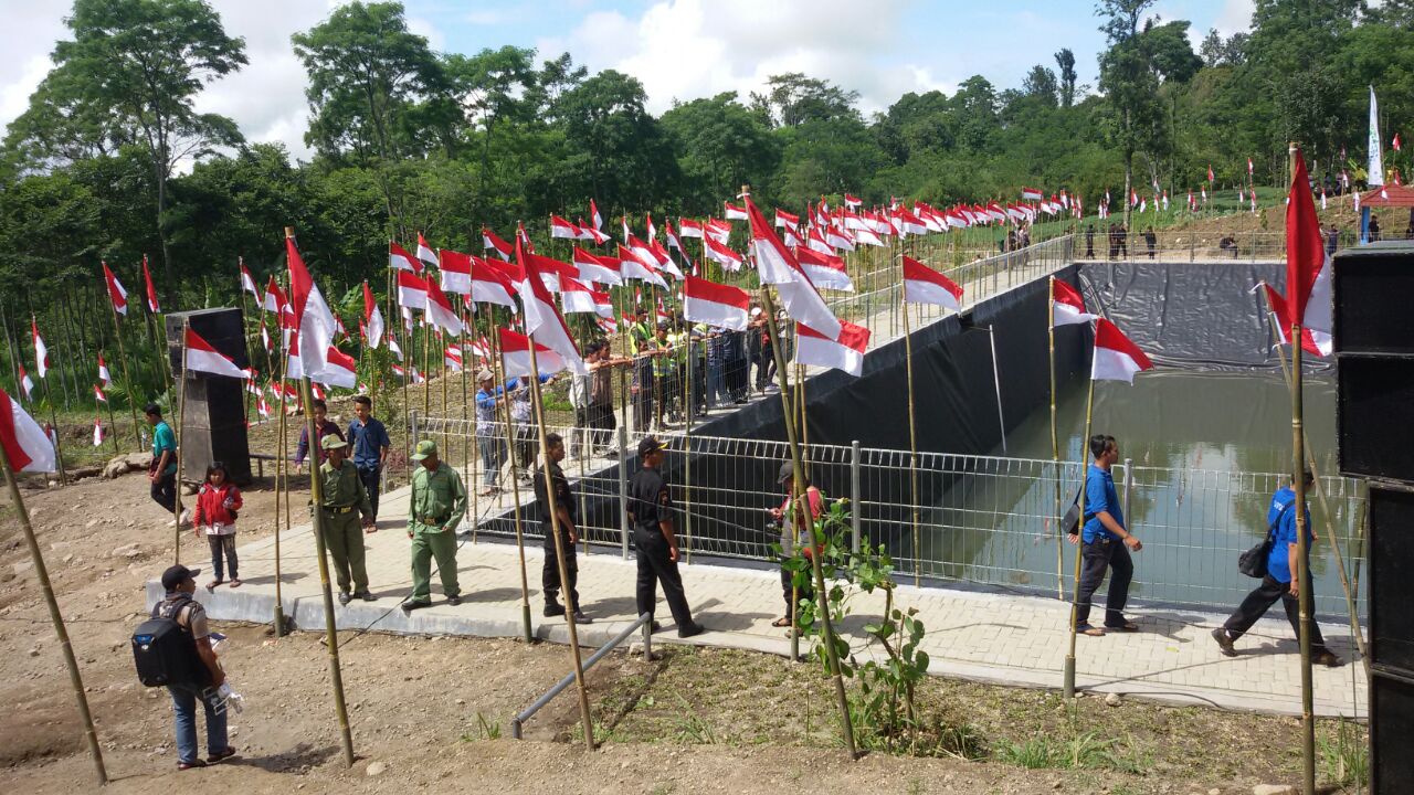 Pengibaran 1000 Bendera Merah Putih di Embung Tirtomulyo.