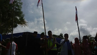 Danramil 13/Kemalang Kodim 0723/Klaten (Kapten Inf Jatmiko Sujarwo) beserta anggota menghadiri acara pengibaran 1000 bendera Merah Putih dalam rangka  memperingati hari sumpah pemuda di Embung Tirtomulyo, Sapu angin, Tegalmulyo, Kemalang, Klaten, Minggu (30/10).