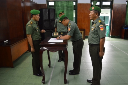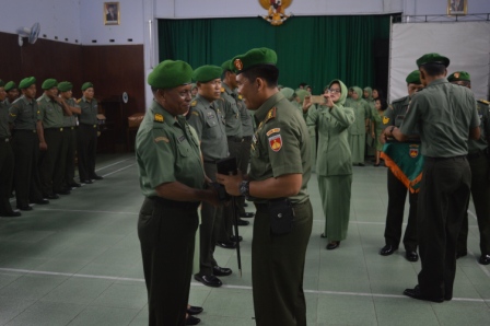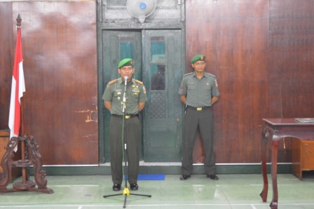 Dandim 0723/Klaten Letnan Kolonel Inf Bayu Jagat, S.I.P. memimpin Sertijab Perwira Kodim 0723/Klaten di Aula Makodim. Jum’at  (18/11)