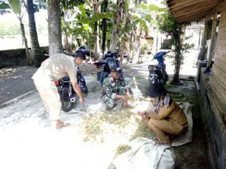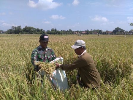 Babinsa Koramil 20/Cawas Kodim 0723/Klaten Serda Edi Suranto bersama PPL dan Kelompok tani (Poktan) melaksanakan teknik pengukuran hasil panen secara Ubinan di dua kelompok tani yaitu area persawahan kelompok tani Agung Rejeki dan Kelompok tani Subur di desa Bawak kecamatan Cawas, Minggu (26/2).