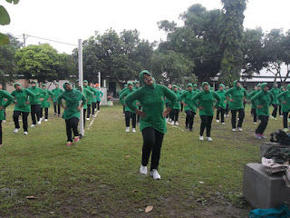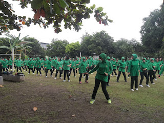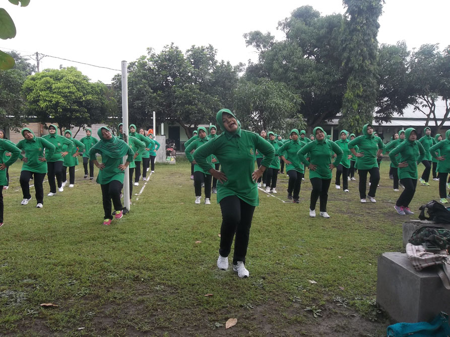 Pendim 0723/Klaten. Persit Kartika Candra Kirana Cabang XLIV Kodim Klaten melaksanakan senam aerobik di lapangan Asrama Kodim 0723 Klaten (10/02/17) dilanjutkan olahraga voli sebagai ajang pelatihan.