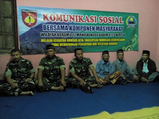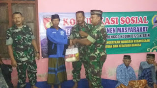 Klaten (11-03-17) Ramil 12/Manisrenggo melaksanakan Komsos dengan komponen masyarakat di rumah Bapak Parno yang terletak di dukuh Tegal Pete, desa Solodiran, kecamatan Kemalang yang dihadiri oleh warga masyarakat sekitar dengan jumlah 62 warga masyarakat Dalam kesempatan tersebut Serka Toni memberikan pengarahan tentang keamanan lingkungan harus di jaga oleh seluruh warga masyarakat. Akan pentingnya keamanan diharapkan masyarakat selalu melaksakan ronda/patroli di sekitar tempat tinggal mereka masing-masing.