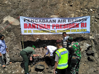 Klaten (8/3/17) Dandim 0723/Klaten Letnam Kolonel Inf Bayu Jagat, SIP melaksanakan pelatakan batu pertama pembangunan Bak Air bantuan Presinden RI di Kali Krasak Dukuh Gondang, Desa Tegal Mulyo, Kecamatan Kemalang wilayah Kodim 0723/Klaten Hadir pada kesembapatan tersebut Muspika Kecamatan Kemalang dan dihadiri masyarakat Desa Tegalmulyo 50 orang. Warga merasa senang mendapat bantuan dari Presiden RI tersebut.