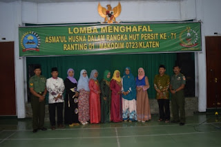 Klaten(03/03/17) Persit Kartika Candra Kirana Ranting 1 Cab XLIV Kodim 0723/Klaten melaksanakan lomba menghafal Asmaul Husna di Aula Makodim 0723/Klaten yang diikuti oleh seluruh anggota Persit KCK Ranting 1 (Makodim) Cab XLIV.