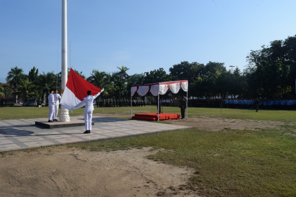 Kegiatan diawali dengan laporan Perwira Upacara kepada Irup, Penghormatan kepada Irup dilanjutkan Laporan Komandan Upacara, Pengibaran Bendera Sang Merah Putih, Pembacaan Pancasila oleh Irup dan ditirukan seluruh peserta upacara, Pembacaan UUD 1945, Amanat oleh Irup, menyanyikan lagi Bagimu Negeri dan Satu Nusa Satu Bangsa, Doa, Laporan Komandan Upacara kepada Irup.