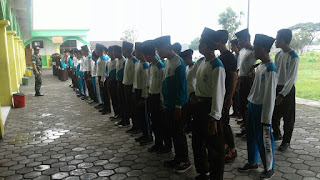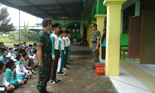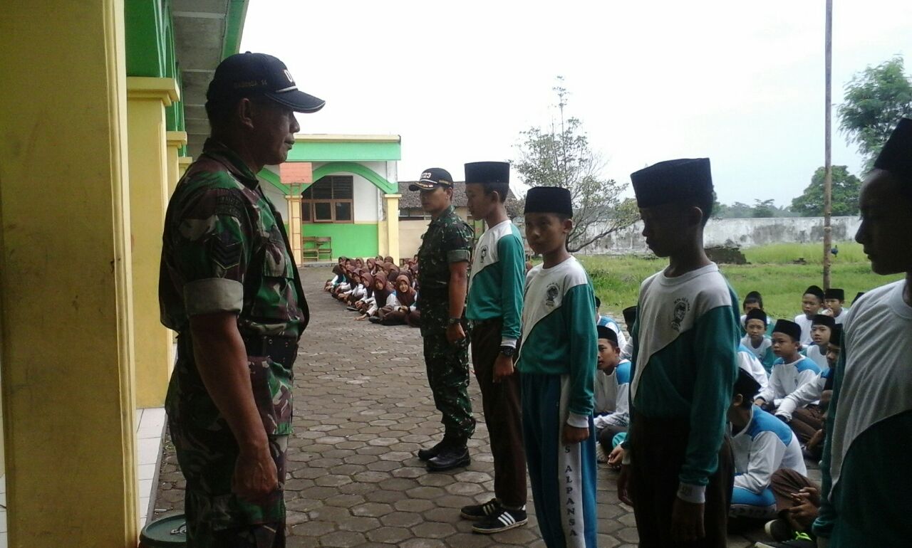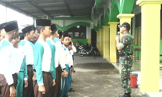 KLATEN, Babinsa Koramil 14/Karanganom Kodim 0723/Klaten, Serka Suharno dan Sertu Sutopo melatih PBB (Peraturan Baris Berbaris) dan menyampaikan materi wawasan kebangsaan bagi para Santri di MTs Al Muttaqien Pancasila Sakti. Serka Suharno menyampaikan bahwa, Latihan ini bertujuan untuk membentuk karakter para siswa-siswi agar lebih disiplin dan memupuk jiwa Nasionalisme, Jumat (24/11/2017).