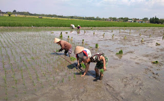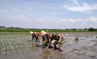 selaku babinsa tegalgondo sertu wahyadi ikut membantu petani tanam padi di sawah .petani akan lebih semangat dan termotivasi dalam mensukseskan LTT dan swasembada pangan.Pendim 0723/Klaten