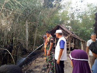 Setelah api berhasil di padamkan puing – puing bekas kandang kerbau milik Suhanto langsung di bersihkan oleh warga untuk memastikan tak ada titik api kecil yang bisa memicu kebakaran susulan.(Pendim 0723/Klaten)