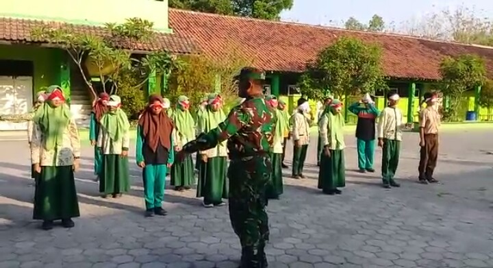 Tanamkan Sikap Disiplin dan Bina Karakter Babinsa Koramil 20/Cawas latih PBB Siswa MTs Negeri 5 Cawas