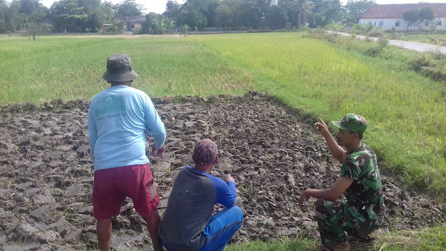 Di sela sela waktu istirahat setelah selesai membantu mengolah sawah pertanian serka Suratmin berbincang dengan para petani yang tergabung dalam poktani sawonggaling dukuh gelang ds mayungan