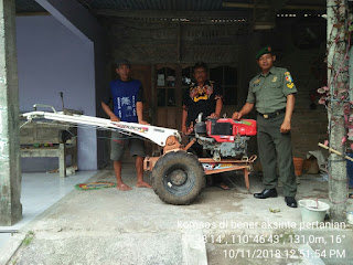 Kegiatan pengecekan & pendatan bantuan alsintan di Desa. Bener bentangan dan Ds.sekaran Wonosari tersbeut dilakukan oleh Serda Agus, Sertu Haryanto dan Sertu paji Anggota Koramil 22 Wonosari. (Pendim 0723/Klaten)