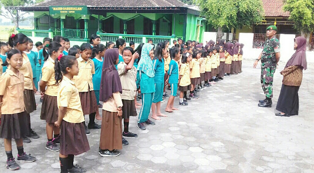 Lanjut, Danramil dalam pemberian materinya tentunya di sesuaikan dengan kemampuan daya pikir anak setingkat SD yaitu dengan pola mengajak kembali untuk mengingat nama-nama para Pahlawan nasional serta perjuangannya, menyanyikan lagu-lagu nasinal, penanaman nilai-nilai saling menghormati, Kesetiakawanan, sopan santun dan giat belajar sebagai bagian dari perjuangan adik-adik siswa-siswi sekolah dasar.