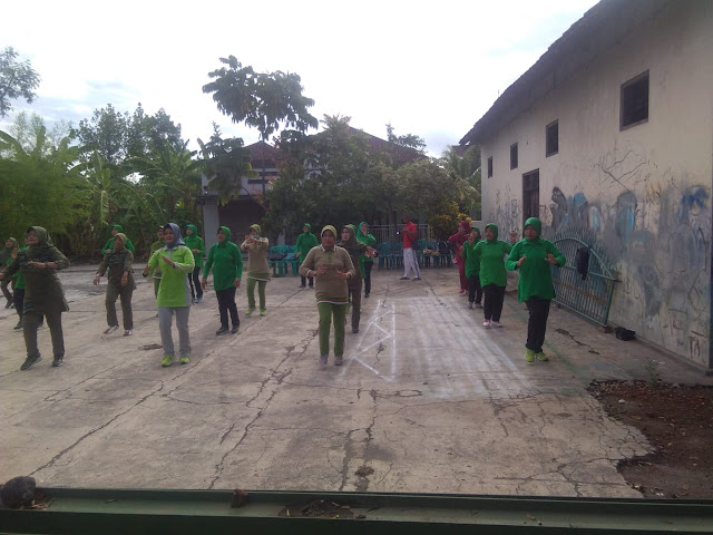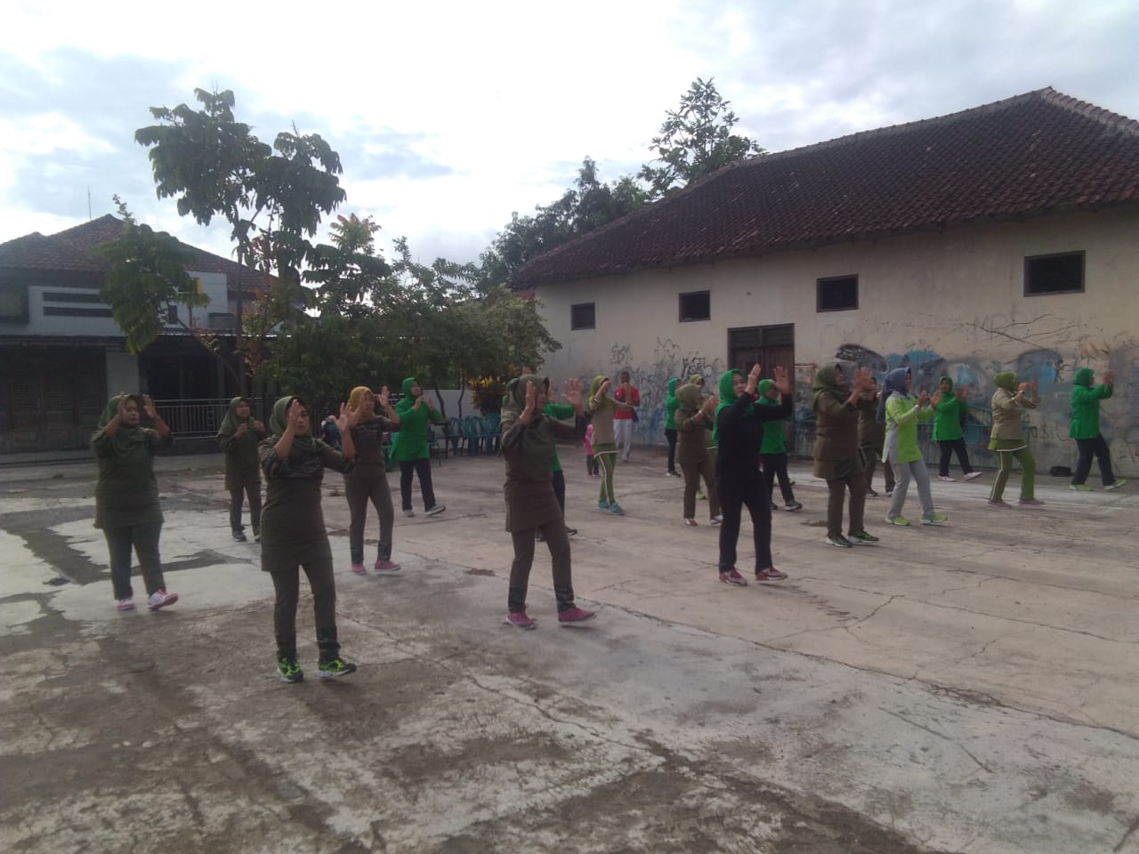 Ketua Ranting Persit Kartika Candra Kirana Koramil 19/Trucuk Ny Maliana dan Ketua Ranting Persit Kartika Candra Kirana Koramil 04/Pedan Ny Asrori Beserta anggotanya melaksanakan olah raga senam bersama di Samping Halaman Koramil 19/Trucuk, Jum’at (30/11/18).