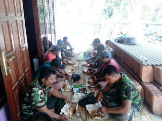 “Acara Gotong Royong di lanjutkan makan bersama, dengan menu sederhana ,dan  manfaatkan untuk momen silaturahmi dan pendekatan sehingga terjalin komunikasi sosial yang baik antara TNI dan rakyat,” ujar Serda Ali .