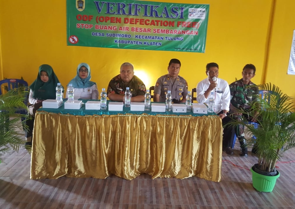 Muspika Kecamatan Tulung, Perangkat Desa dan Babinsa Koramil 16/Tulung Kodim 0723/Klaten wilayah Desa Sudimoro Serma Jayadi hadir pada kegiatan Deklarasi Open Defecation Free (ODF) yang dilaksanakan di Balai Desa Sudimoro Kecamatan Tulung, Kabupaten Klaten.
