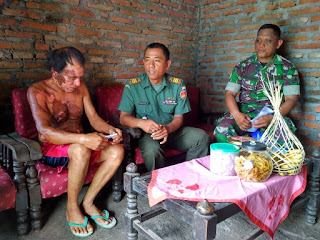 Klaten – Koramil 20/Cawas Kodim 0723/Klaten memberikan bantuan kepada Bapak Tugiya (65 ) yang beralamat di Dukuh Tirtomarto RT 15 RW 07 Desa Tirtomarto Kecamatan Cawas , Kabupaten Klaten karena kecelakaan kerja tersiram air panas,Selasa (6/11/2018).