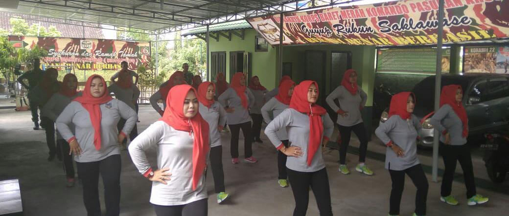 Klaten – Ibu ibu persit Kartika Candra Kirana Ranting 23 Koramil 22/wonosari menggelar Senam Gemu Famire yang dilaksanakan di halaman Koramil 22/Wonosari, Selasa (6/11/2018).