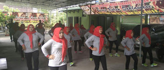 Tampak Ibu-ibu Persit Koramil 22/Wonosari dengan penuh semangat mengikuti setiap gerakan senam Gemu famire.