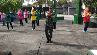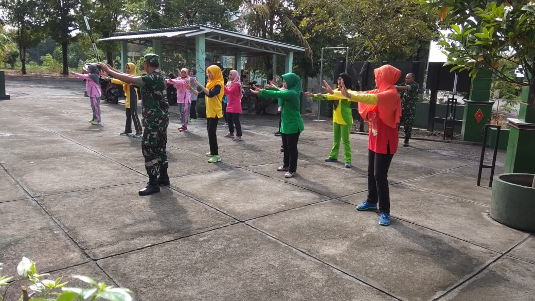 Semangat Persit Koramil 12 Manisrenggo melaksanakan senam bersama