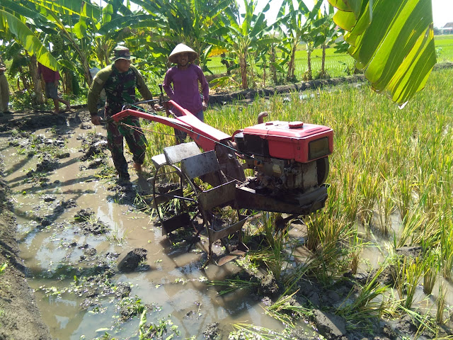 Seperti yang dilakukan Serda wariso yang turun ke sawah membantu petani membajak dengan alat bajak modern untuk mengemburkan sawah yang saat ini sudah banyak yang menggunakan tenaga mesin diesel sehingga hasil membajak lebih cepat.
