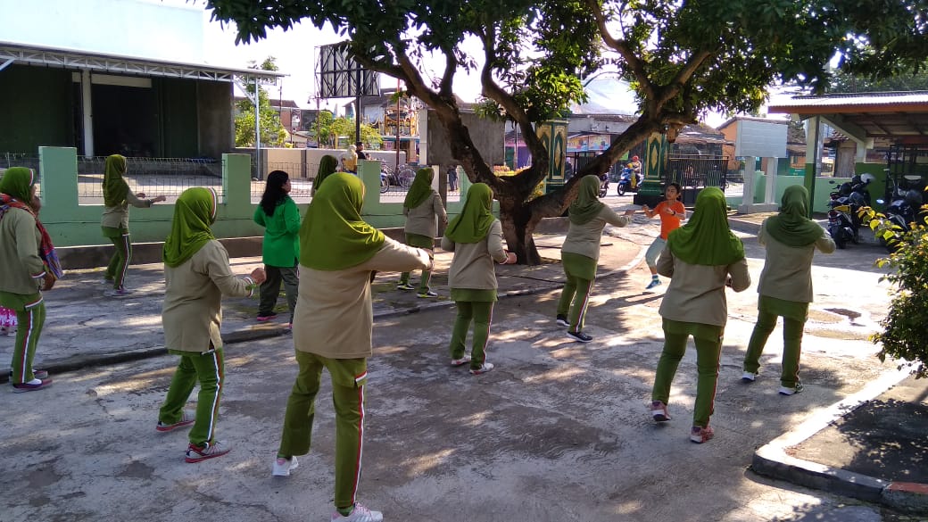 Persatuan Istri Tentara (Persit) Kartika Chandra kirana (KCK) Ranting 15 Koramil 14 Karanganom Cabang XLIV  Kodim 0723/Klaten melaksanakan senam Tobelo di halaman Makoramil 14 Karanganom.(06/02/19)