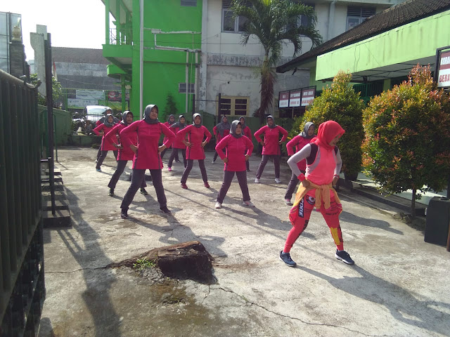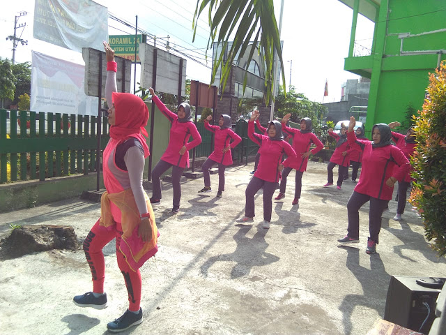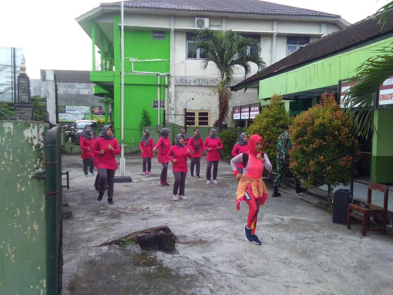 Seluruh ibu- ibu Persit Kartika Chandra Kirana Rating 25 Koramil Klaten Utara Melaksanakan kegiatan senam yang di lakukan di depan halaman Koramil 24/ Klaten Utara.