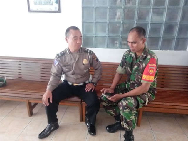 Serka widada Babinsa Koramil 12/Manisrenggo Kodim 0723/Klaten bersama sama dengan Babinkamtibmas, berkomunikasi sebagai bentuk rasa kekompakan dalam melaksanakan tugas untuk menjalin rasa keakraban , bertempat di Desa Nansri Kecamatan Manisrenggo Kabupaten Klaten, Selasa (28/05/2018).